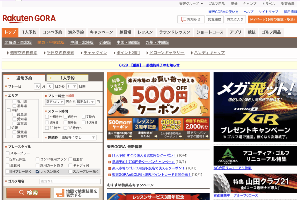 ということで今回は有名どころのゴルフ予約サイトを比較してみました。
